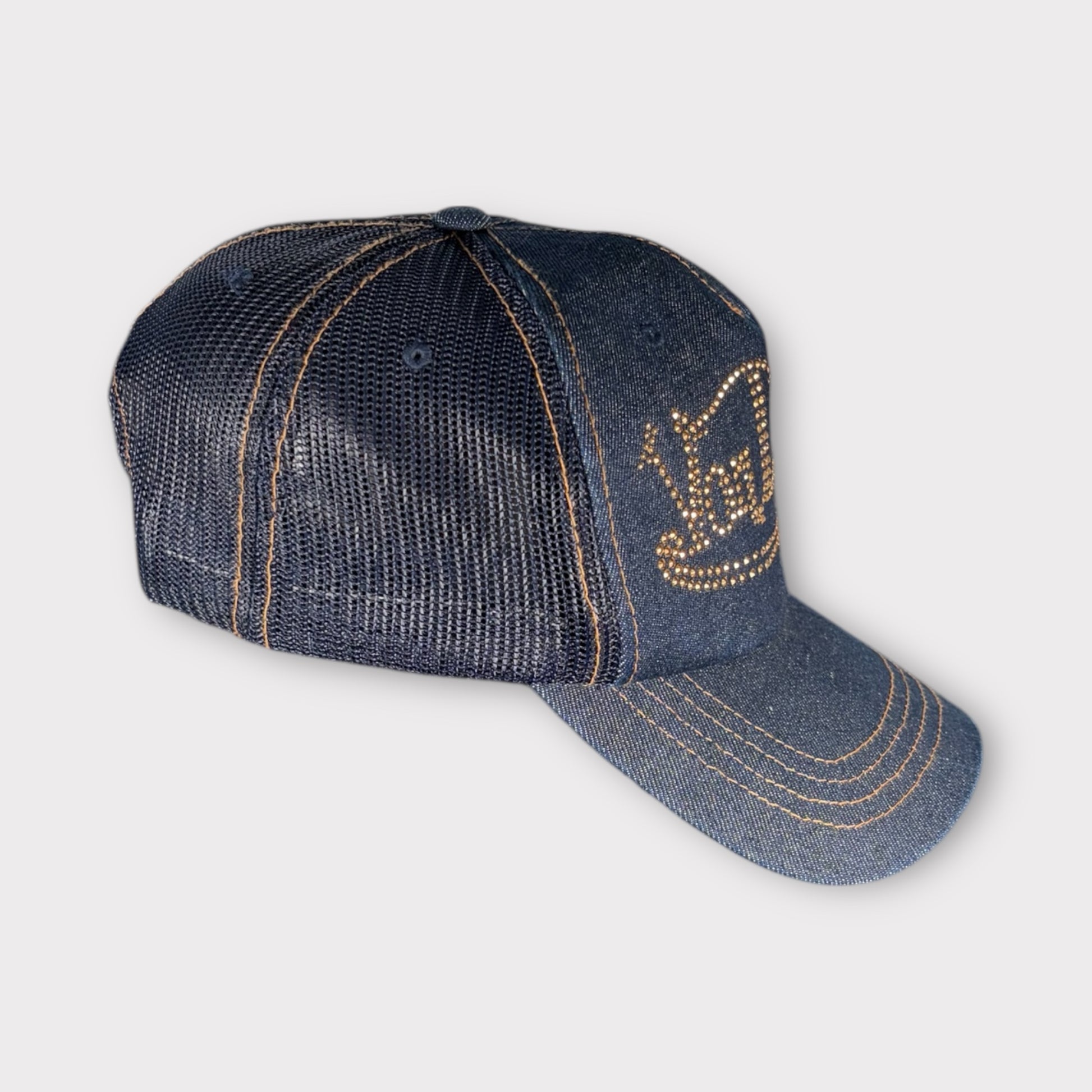 VON DUTCH Y2K DENIM SEQUINNED TRUCKER CAP